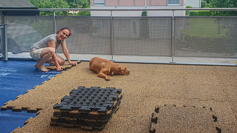 Le revêtement de sol de WARCO est facile à installer sur presque toutes les surfaces porteuses sans grande préparation. Ils sont résistants au gel, aux intempéries et extrêmement durables. Ils isolent contre la chaleur, le froid et le bruit, protègent contre les blessures dues aux chutes et sont antidérapants.