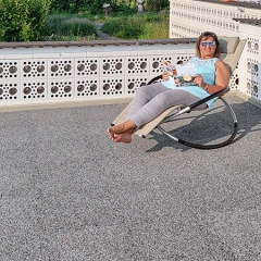 Les dalles se posent facilement, rapidement et simplement – même pour les non-initiés. Elles offrent une sensation de marche exceptionnelle, même pieds nus. Le matériau dégageait une légère odeur pendant quelques heures, avant de disparaître. En bref : nous avons maintenant une terrasse superbe. Recommandé à 100 %.