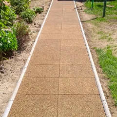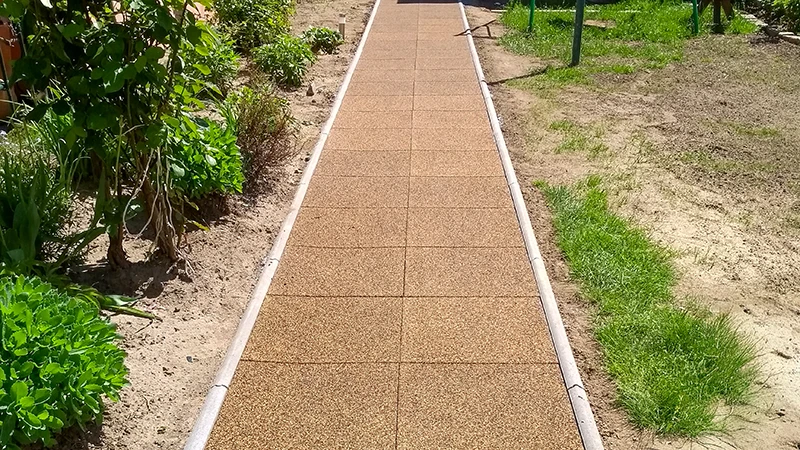 Avec les dalles en granulés de caoutchouc liés au PU de WARCO, vous créez des allées durables et résistantes aux intempéries, faciles à poser et agréables à marcher – pieds nus, en chaussures de jardin ou même en talons.