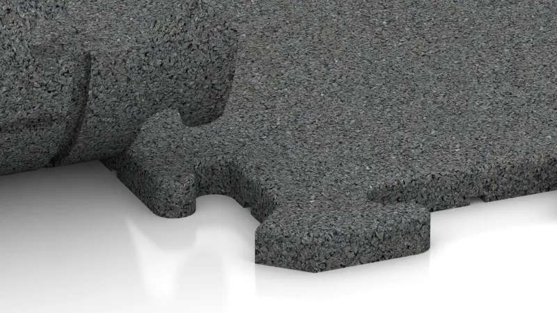 Les dalles se posent à sec, sans fixation permanente, directement sur un support plan et stable. Les bords à emboîtement s’ajustent avec précision pour former une surface homogène et stable, qui reste bien en place même sur de légères irrégularités. Les éléments de rive se découpent facilement à la scie sauteuse ou circulaire. La pose est rapide, propre et ne requiert ni temps de séchage ni accessoires supplémentaires.