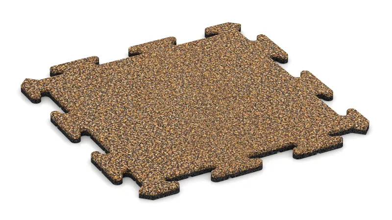 La dalle extérieure est résistante aux intempéries, au gel et aux rayons UV. Elle conserve son élasticité et ses performances tant en été qu’en hiver. Comme tous les sols en granulats de caoutchouc, le matériau vieillit naturellement sans altérer ses qualités. Une surface sûre, confortable et silencieuse qui conserve son aspect et sa fonctionnalité pendant de nombreuses années.