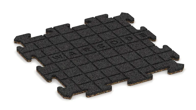 Les dalles se posent à sec, sans fixation permanente, directement sur un support plan et stable. Les bords à emboîtement s’ajustent avec précision pour former une surface homogène et stable, qui reste bien en place même sur de légères irrégularités. Les éléments de rive se découpent facilement à la scie sauteuse ou circulaire. La pose est rapide, propre et ne requiert ni temps de séchage ni accessoires supplémentaires.