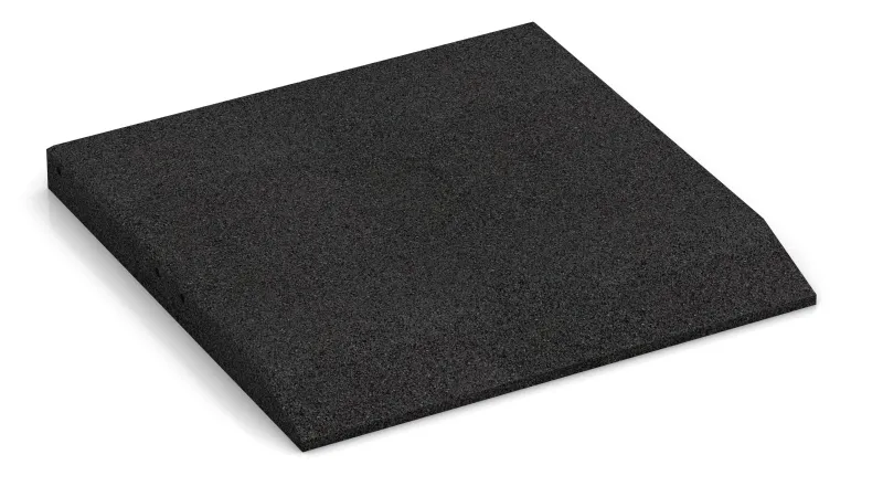 La dalle latérale avec un côté oblique est un complément judicieux et compatible avec le système à la dalle en granulat de caoutchouc de type FS. La dalle latérale est utilisée pour prévenir les risques de trébuchement qui surviennent lors de la transition à la surface faite de dalles antichoc si seulement une partie de cette surface est d'en recouverte. La différence de niveau entre la surface du sol et la surface de dalles en caoutchouc est ainsi compensée en continu par la dalle latérale. Les accidents causés par des trébuchements sont évités et un accès facile avec un fauteuil roulant, une poussette ou un déambulateur est rendu possible.