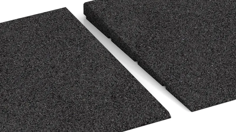 Fabriquée en granulés de caoutchouc recyclé liés avec du PU, la rampe allie robustesse, élasticité et confort d’utilisation. Sa surface antidérapante reste sûre même par temps humide et permet un passage facile à pied, en fauteuil roulant, avec une poussette ou un chariot. Sa structure souple absorbe les vibrations et limite efficacement le bruit.
