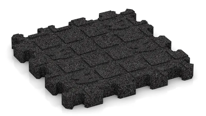 Les dalles mesurent 30,6 × 30,6 cm et sont disponibles en épaisseurs de 2 ou 3 cm. Chaque dalle possède un système d’emboîtement puzzle précis sans chanfrein, créant un joint extrêmement réduit. Cela garantit un rebond régulier du ballon et une surface homogène et de haute qualité. La pose est simple sur asphalte, béton ou une couche de base appropriée (par ex. grille plastique) et forme une surface stable et verrouillée – sans besoin d’outils spéciaux.