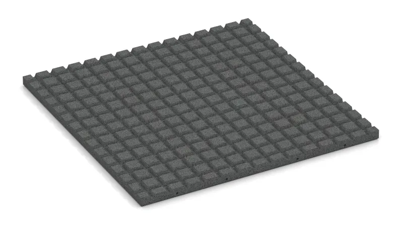 Ce tapis est fabriqué à partir de granulats de caoutchouc recyclé (ELT – pneus en fin de vie) liés par polyuréthane. Sa surface est poreuse, texturée et antidérapante, offrant une bonne stabilité même lors de mouvements dynamiques. Le matériau est souple, stable, agréable au contact et contribue à l’absorption du bruit et des vibrations. Il est résistant au gel, perméable aux liquides, stabilisé aux UV et conçu pour une utilisation durable dans des zones à fort passage.