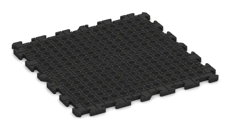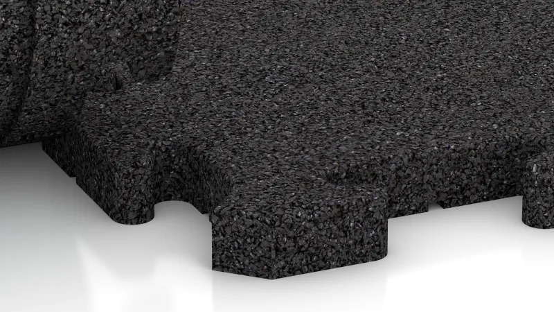 Les tapis sont fabriqués en granulats de caoutchouc liés au PU et disponibles en épaisseurs de 3, 4 ou 5 cm. Grâce à leur haute densité, ils offrent une bonne stabilité à la pression, une faible déformation et une bonne résistance à l’usure. Ils sont donc idéaux pour les zones où des poids, des équipements et des formes d’entraînement intensives sont utilisés.